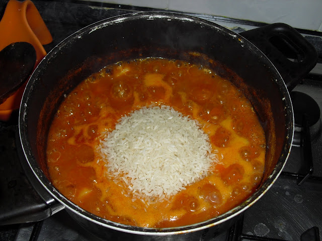 Convém ficar um arroz bem malandrinho,mas com um molho espesso.