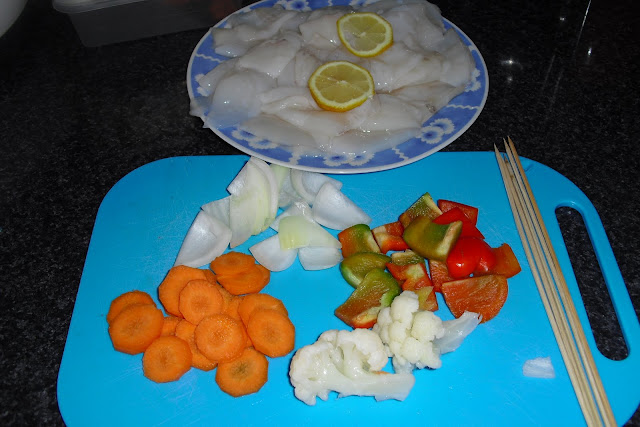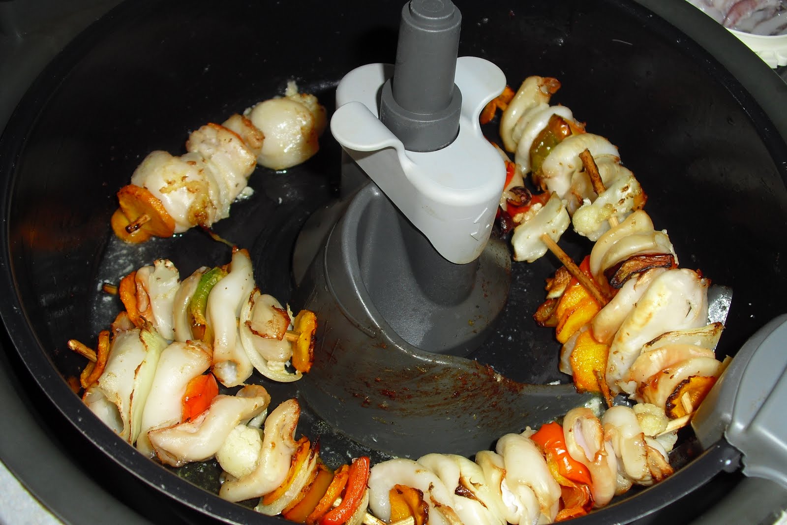 Claro que o sabor é bem diferente de umas espetadas grelhadas, mas na falta de melhor é bem bom e saudável também!!!