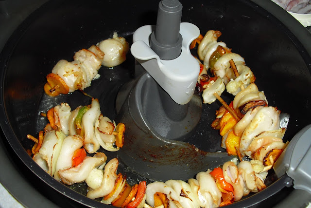 Dias de sol!!! Apetece grelhados...não há onde nem como grelhar...pois então, temos actifry então saem umas espetadas "fritassadas"!!!