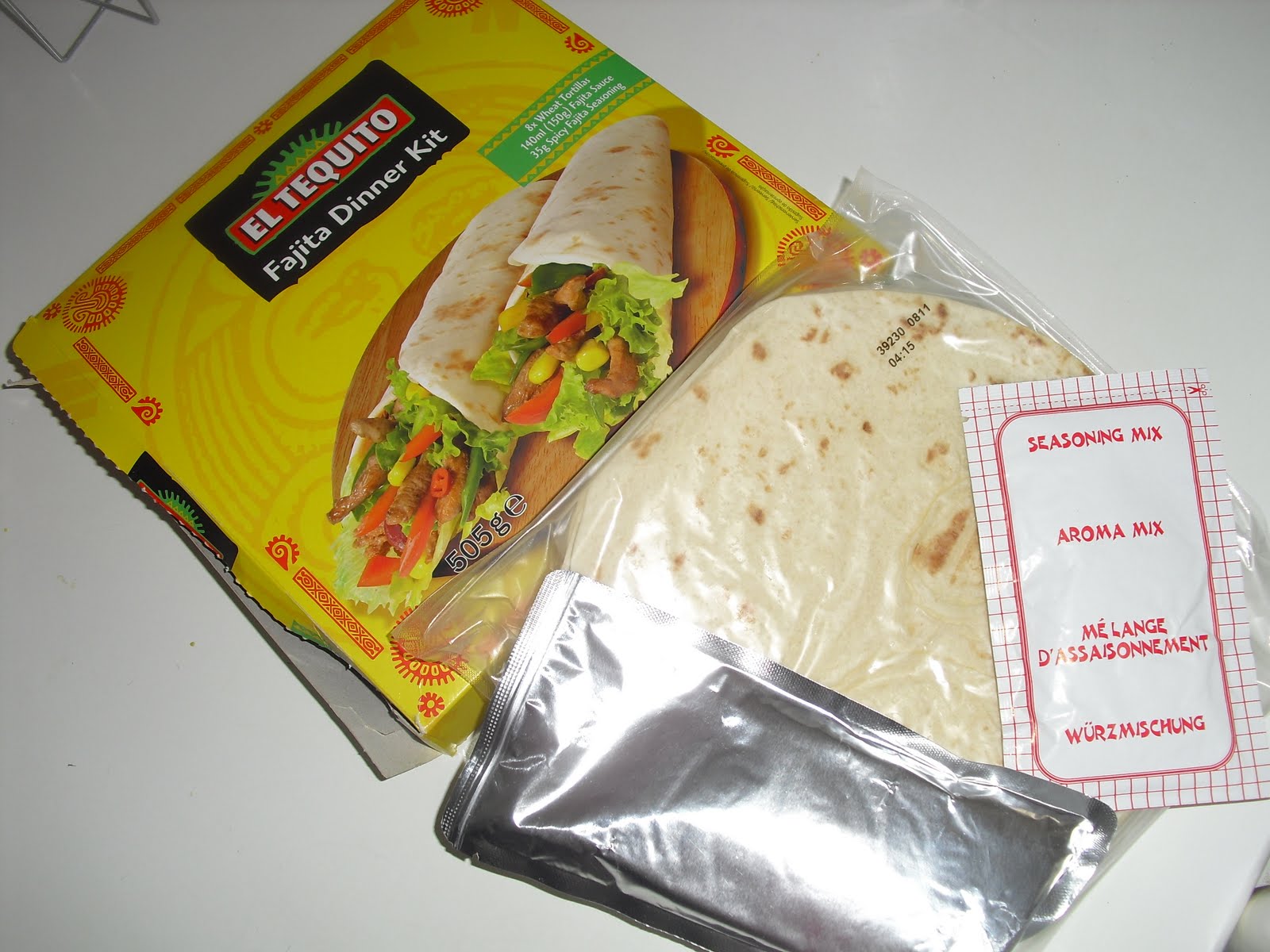 Este é o kit Fajita é composto por uma embalagem de tortilhas, uma saqueta de preparado aromático e uma saqueta de molho fajita.