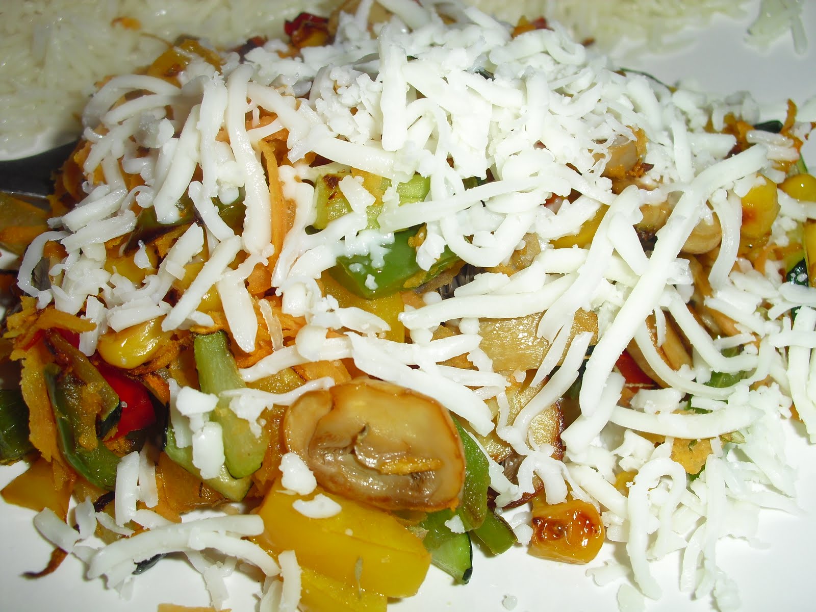 Legumes salteados salpicados de queijo ralado