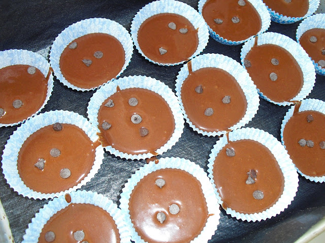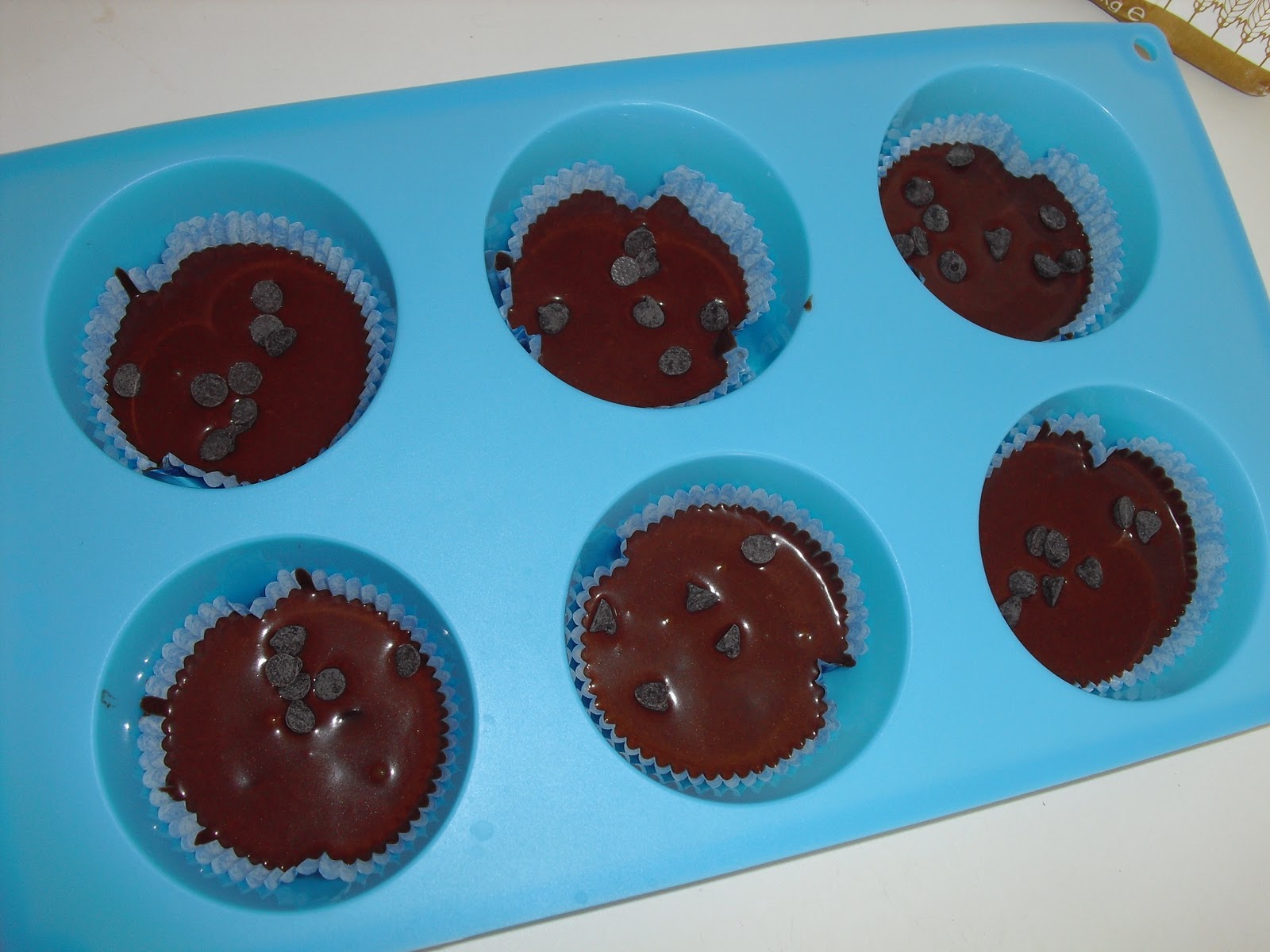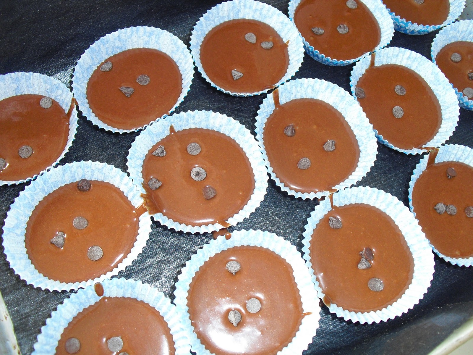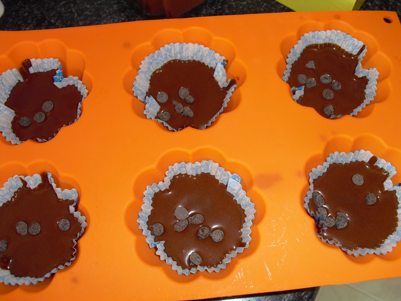 Coloquei mais umas pepitas no cimo de cada forminha.