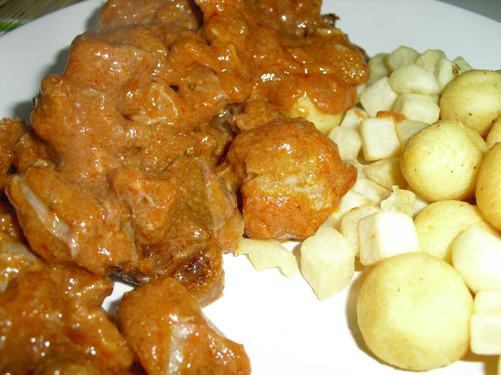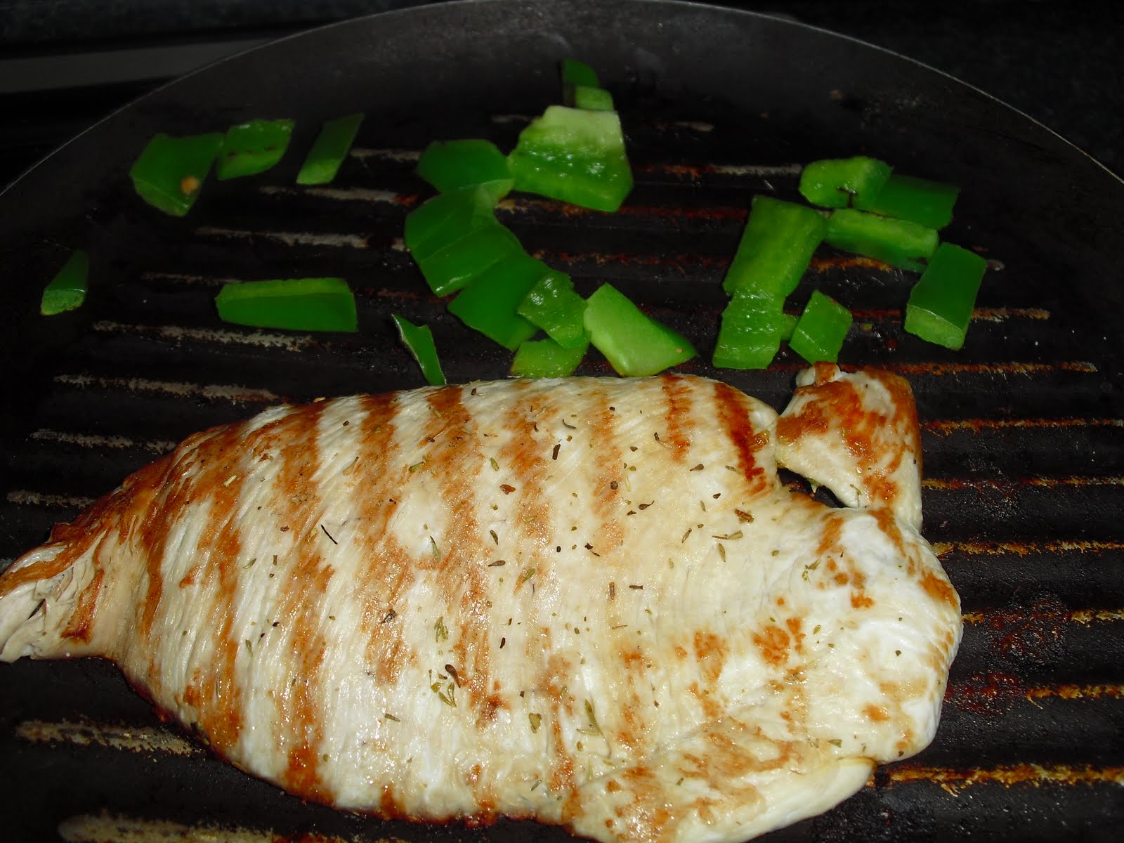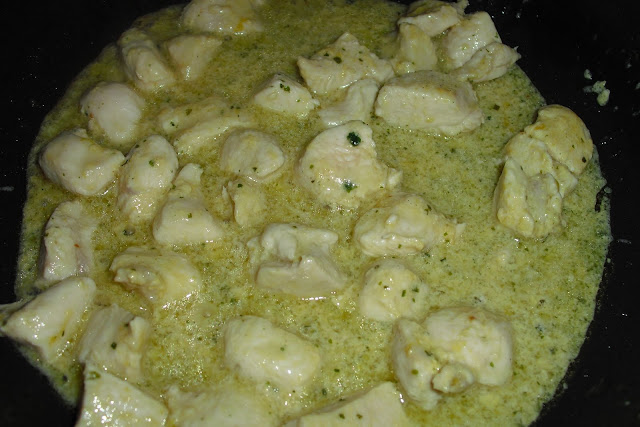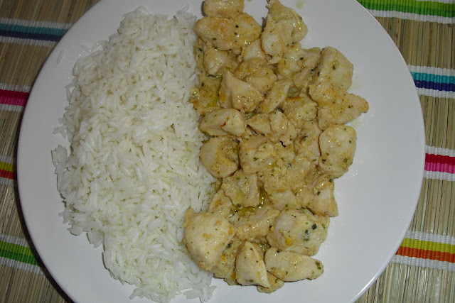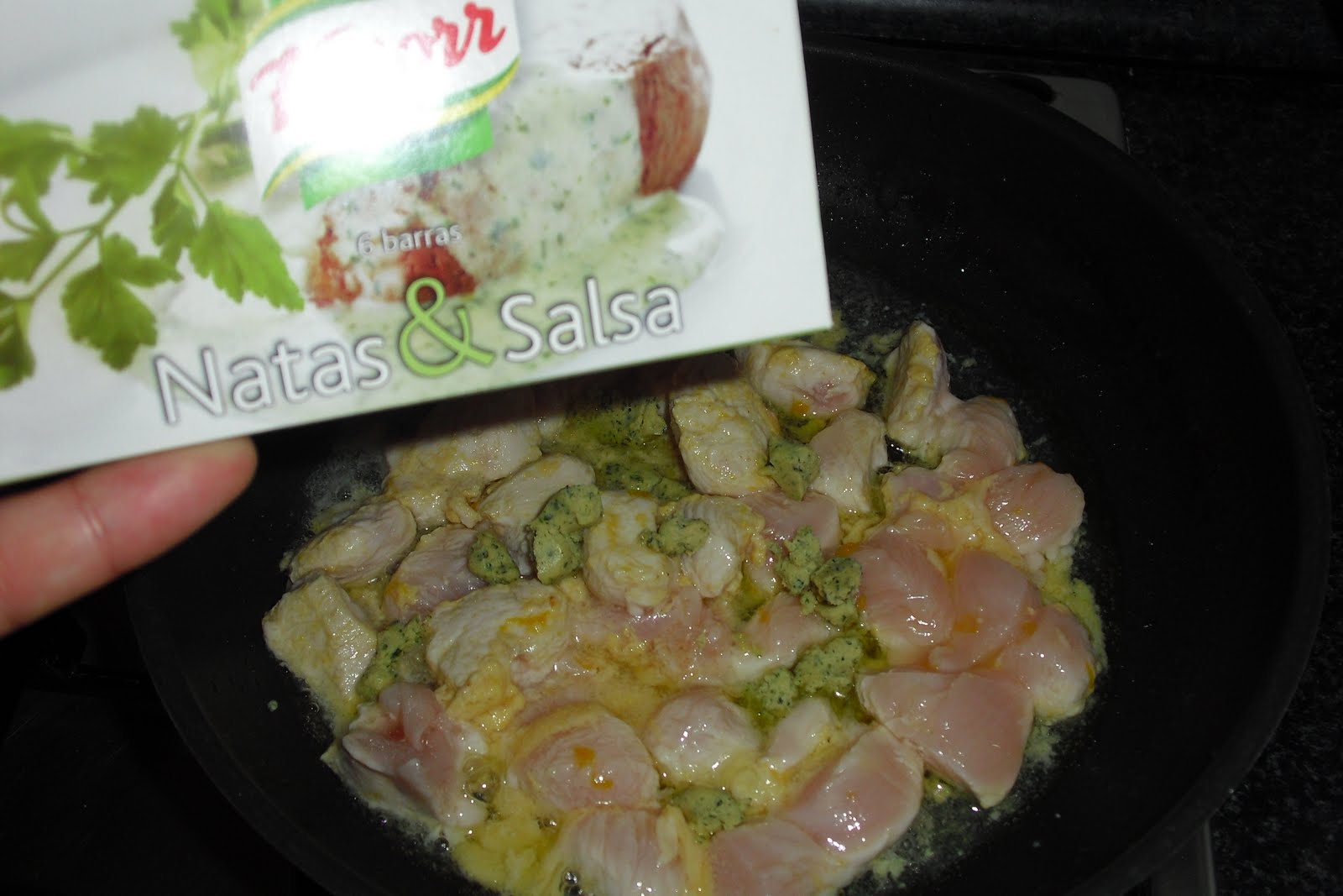E assim com os peitinhos de frango cortados em cubinhos fiz esta refeição.
