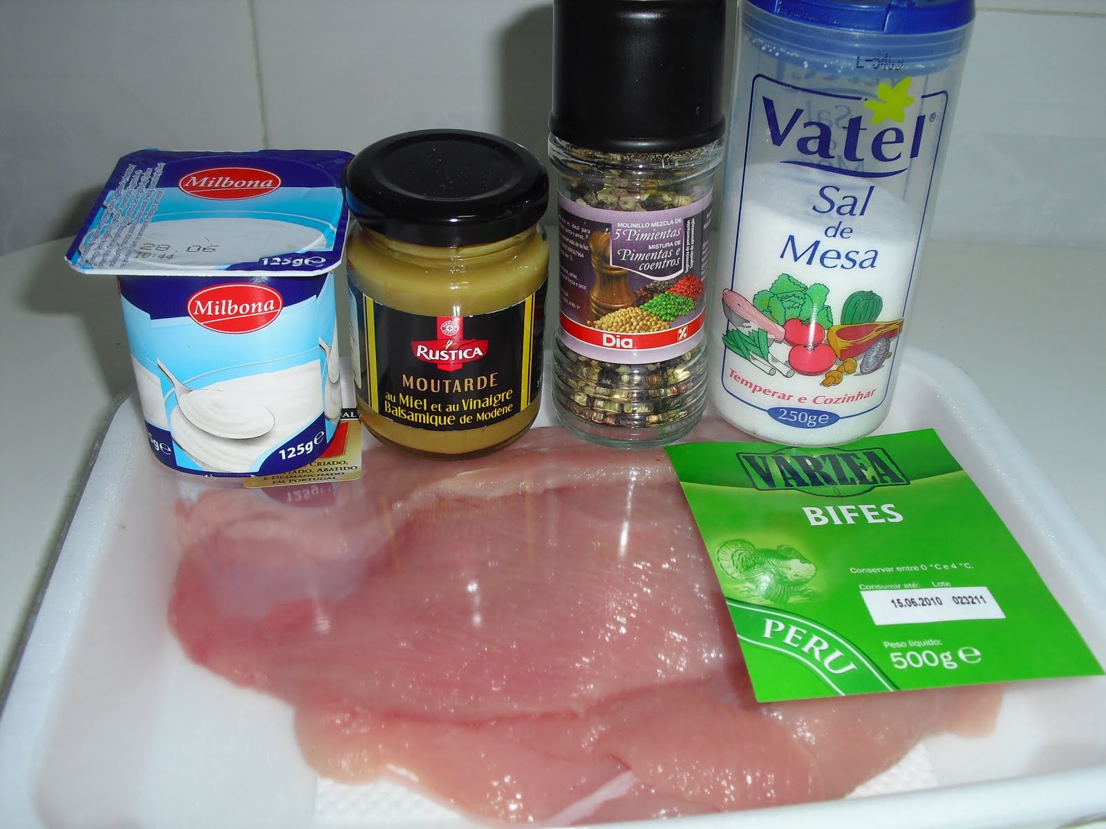 Bifinhos de peru com molho de iogurte e mostarda com mel