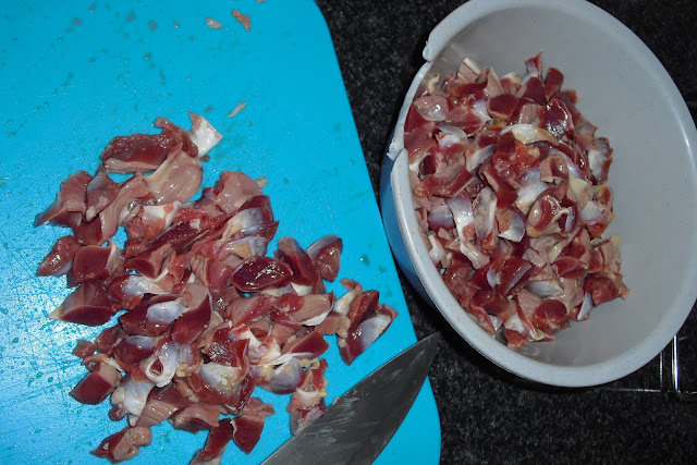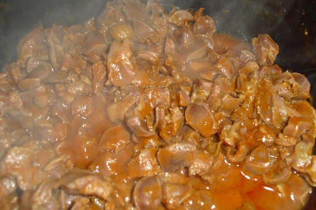 E então bora lá fazer...E aí me lembrei de usar o molho das francesinhas como o refogado para as moelas...Bem uma delicia...delicia...delicia...de comer e chorar por mais!!!